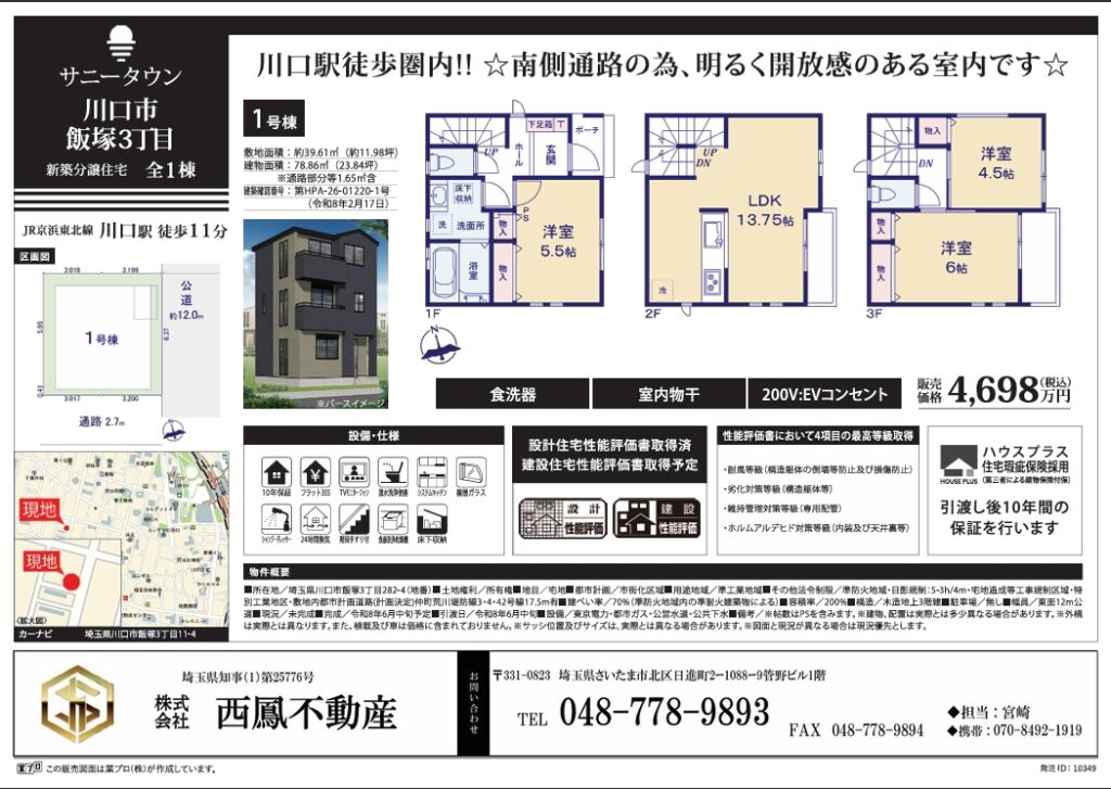 ☆物件情報【川口市飯塚3丁目】新築戸建4,698万円